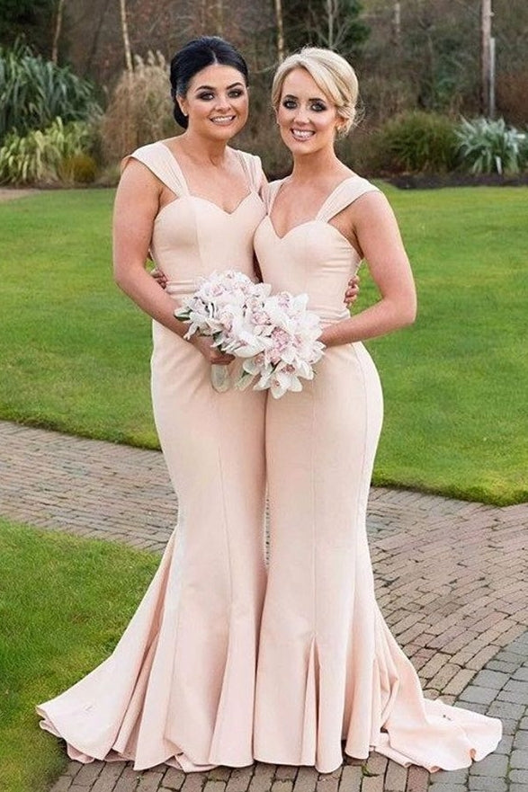 Nude Pink Straps Mermaid Simple Bridesmaid Dresses